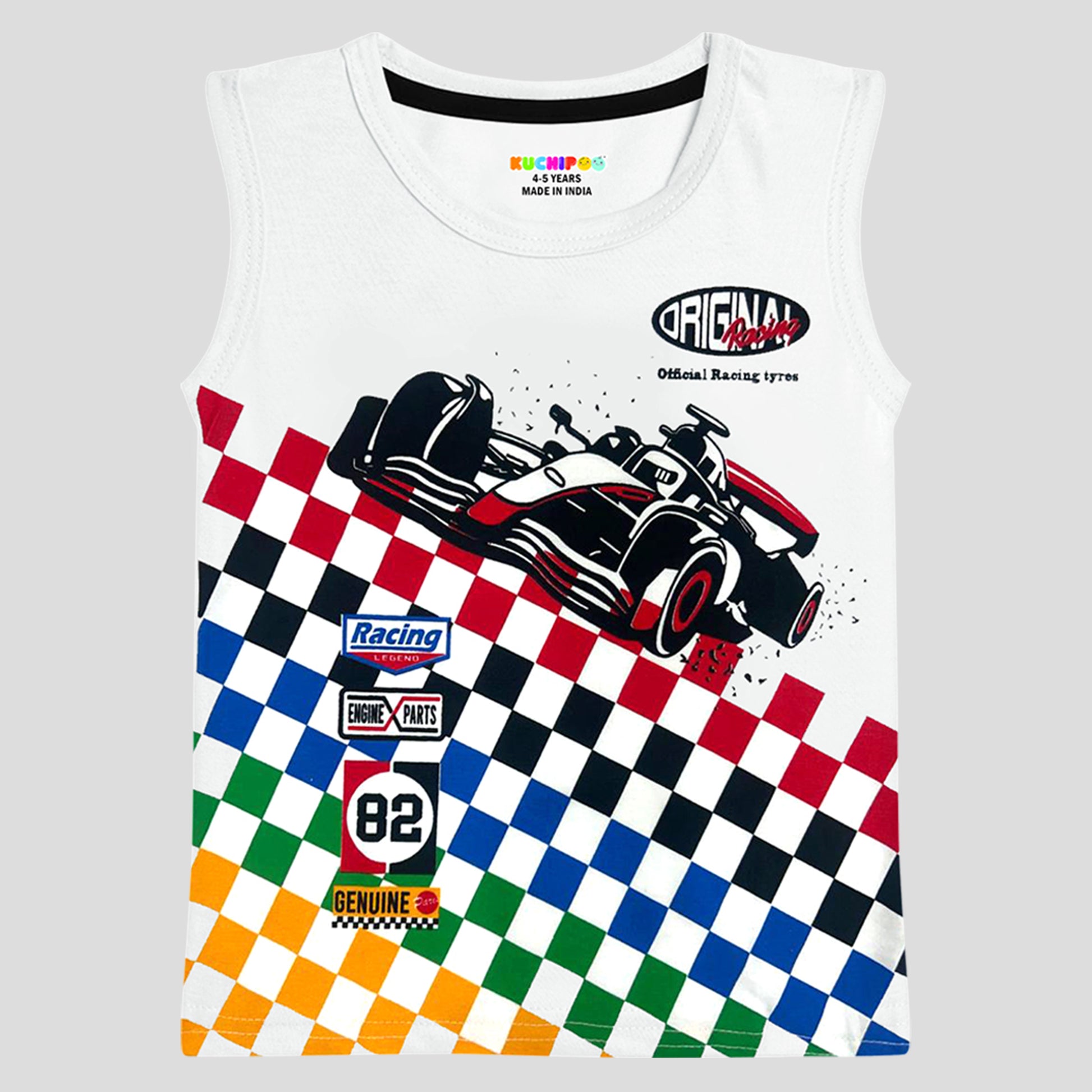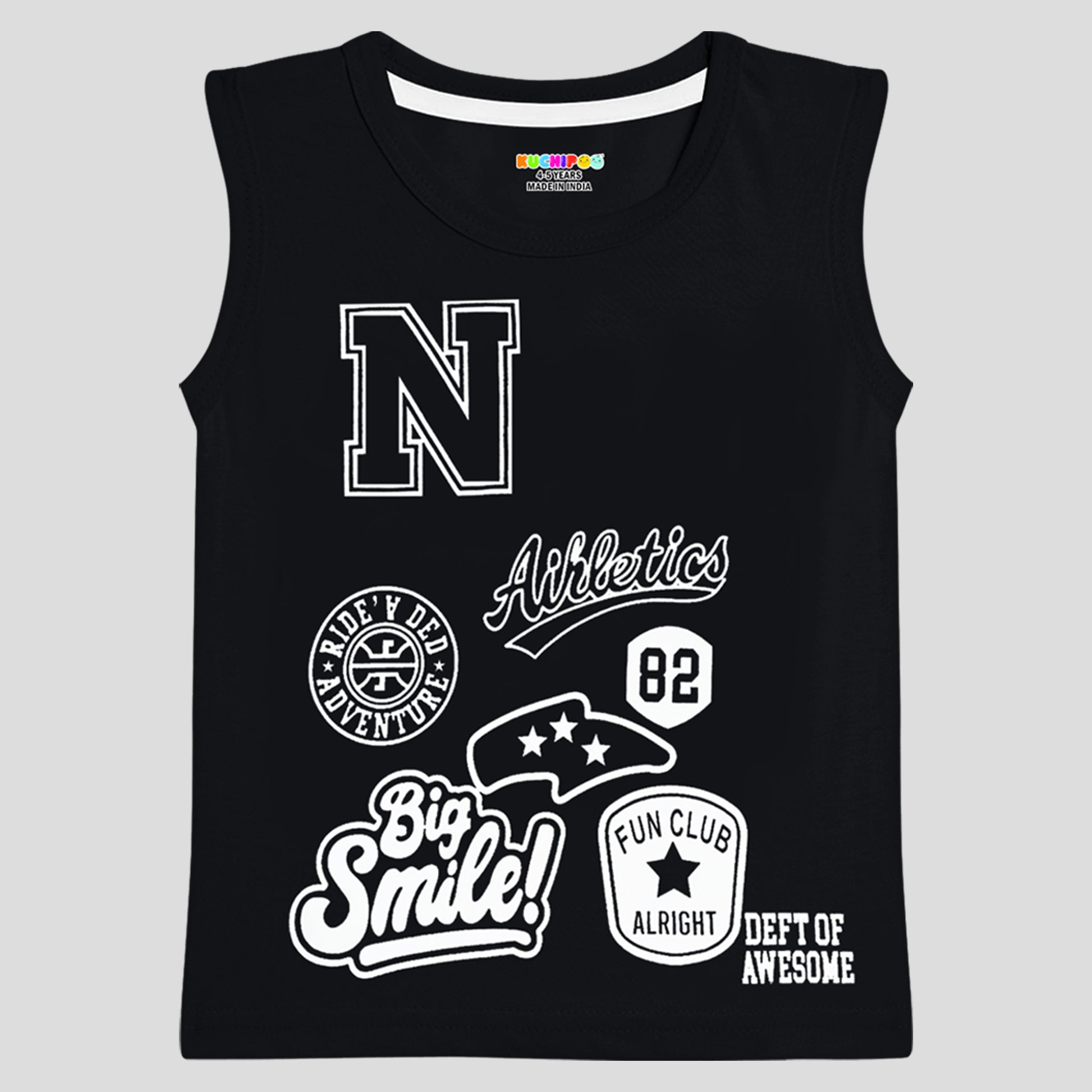 Kuchipoo Boys Sleeveless Cotton Tshirts | Printed Round Neck Kids Tshirts for Summer Wear | Pack of 4