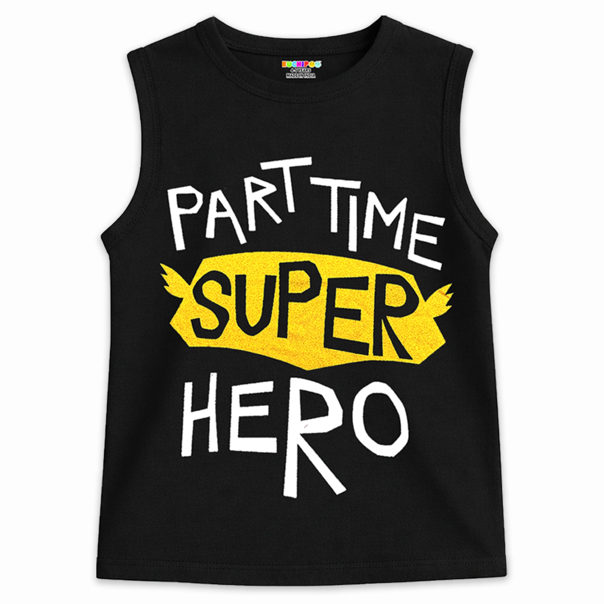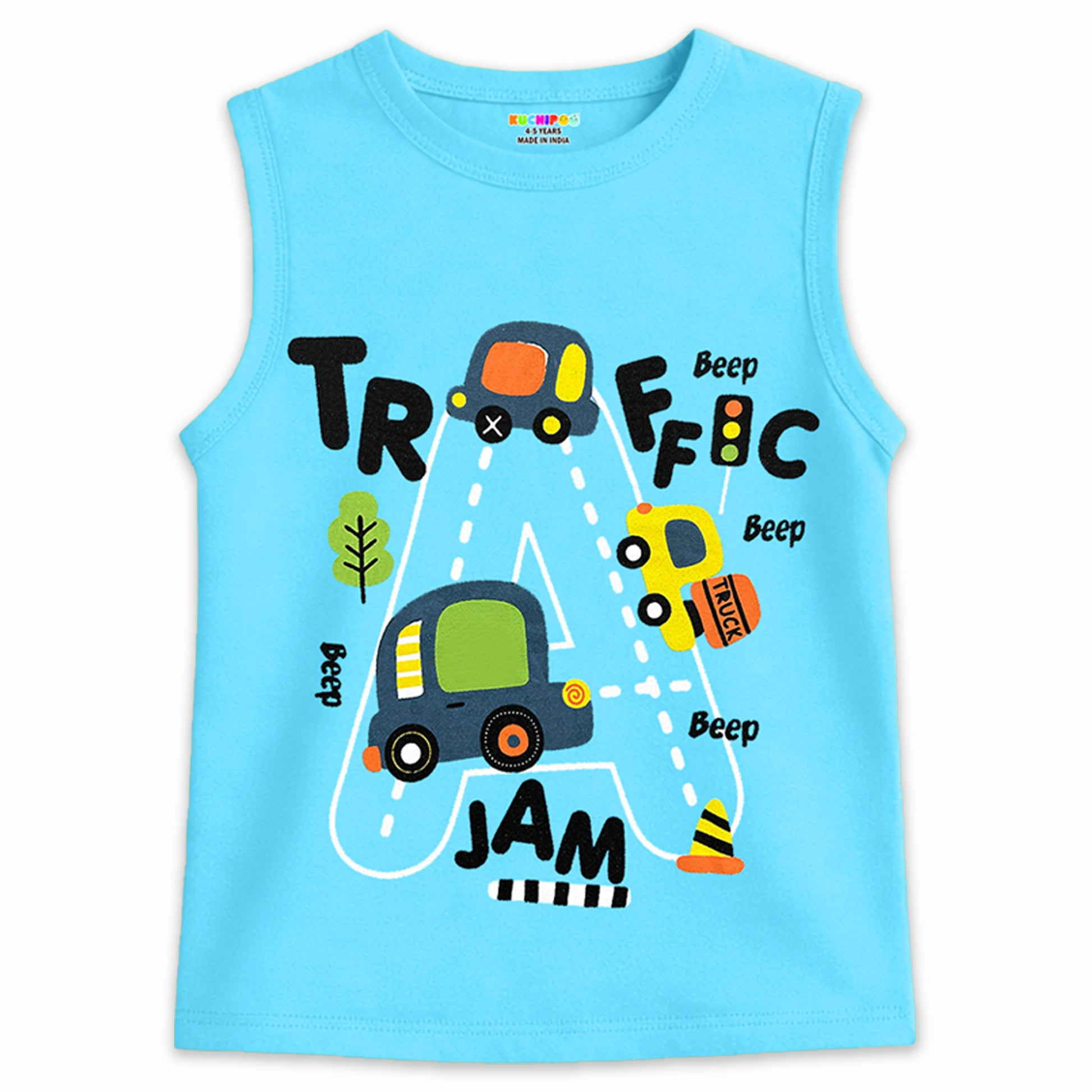 Kuchipoo Boys Cotton Sleeveless T-Shirts | Printed Graphic Design | Lightweight & Comfortable | Summer Casual Wear | Everyday Kids Clothing - Pack of 5
